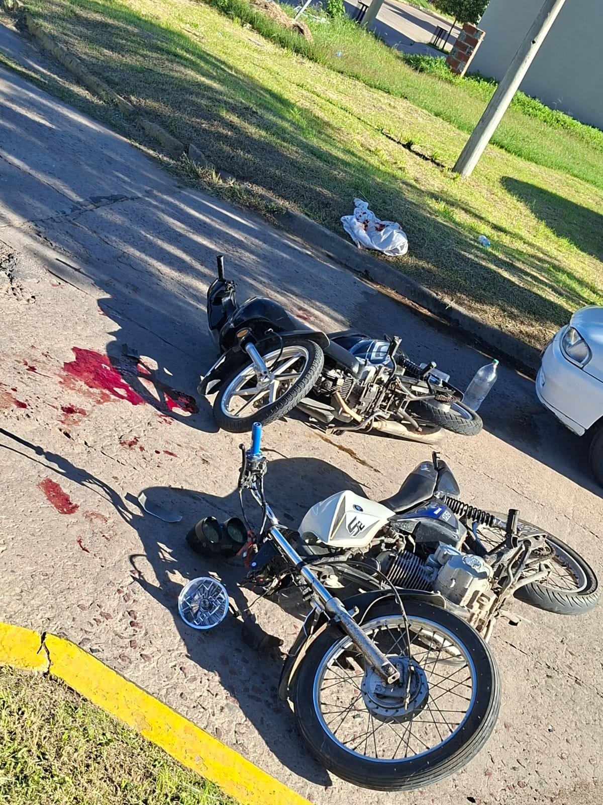 Sucedió en calle Pedro Vignau, e intervinieron 1 motovehículo Motomel s2 dominio 739lcj conducido por un mayor de edad, quien transitaba con menor de 10 años de edad. Por otra parte,  un motovehículo marca Mondial 110 dominio a167lgf, en el que circulaba un mayor de edad. Los tres fueron trasladados en ambulancia del hospital Capredoni por criterio preventivo, quedando ambas motos en la escena del accidente hasta la entrega del precario médico.