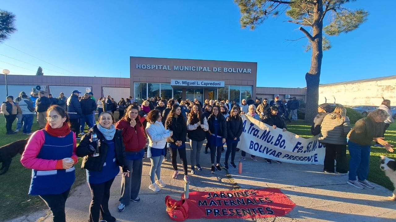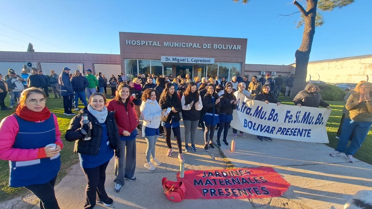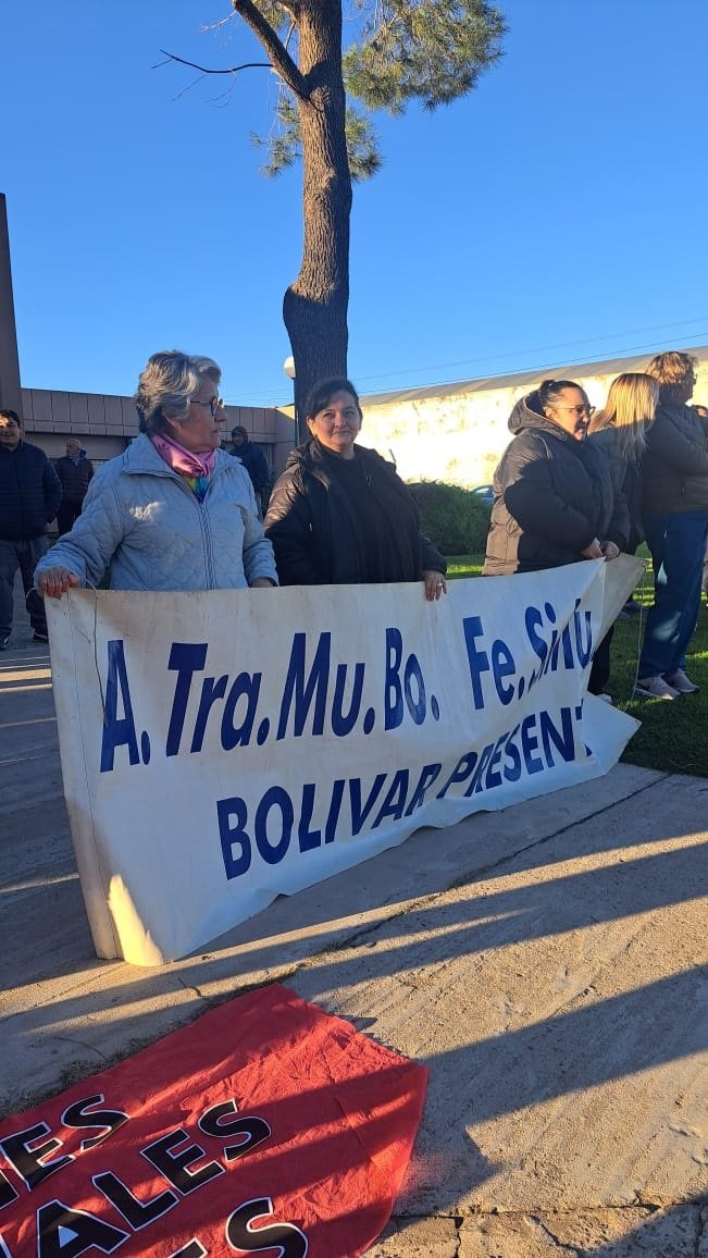 ATRAMUBO impulsó el cese de actividades de empleados municipales por dos horas, con movilización y reclamo salarial frente al hospital