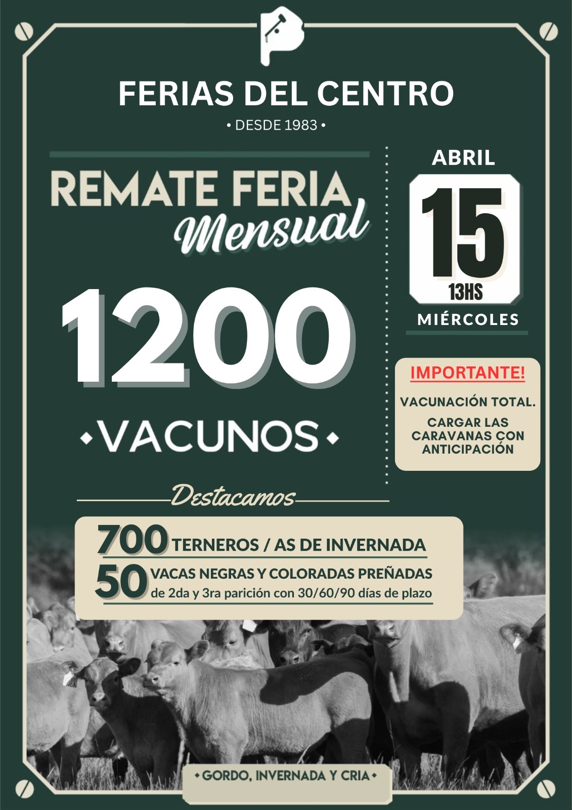 La misma se llevará a cabo el 29 de abril y ya se pueden visualizar los activos y descripción de los lotes en la web: https://www.activos.monasterio-tattersall.com/subasta/29981.-