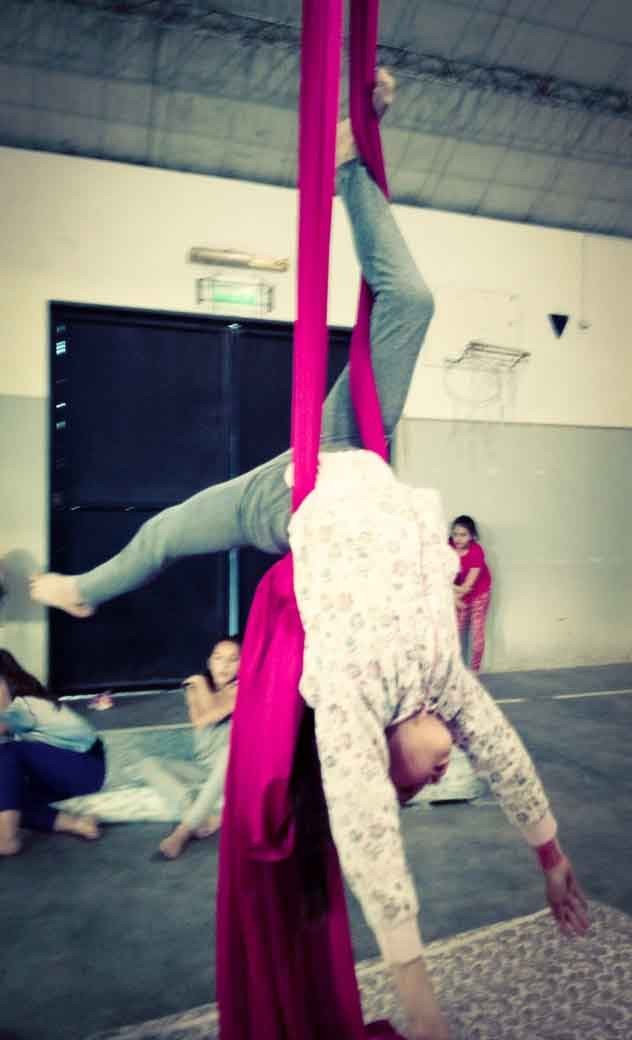 Muestra de acrobacias aéreas en tela del Taller Municipal de Niñez y Envión