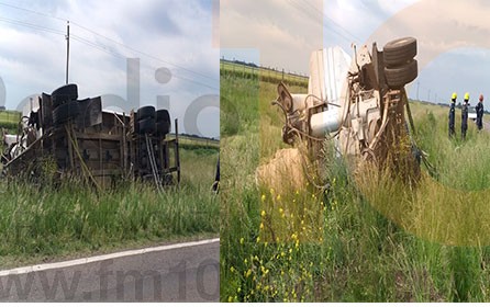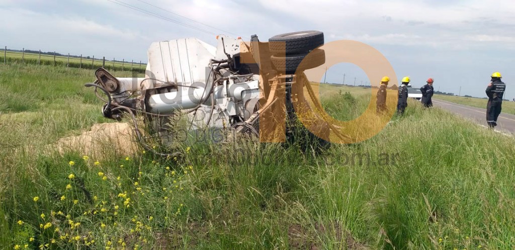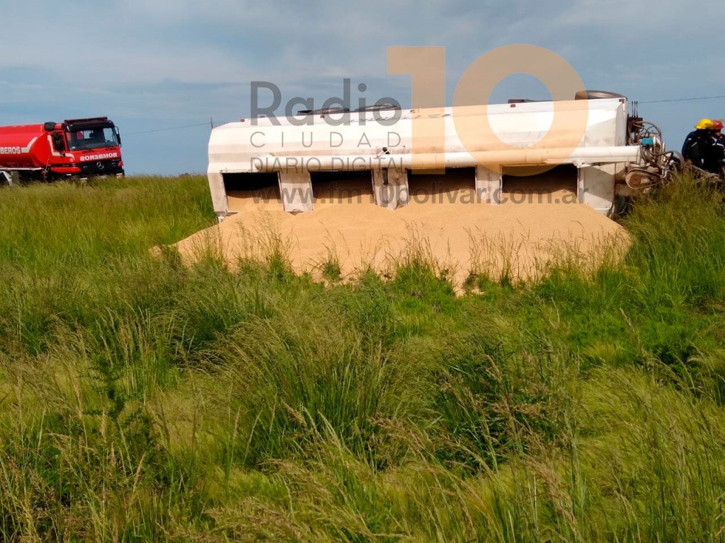 Fue este jueves por la mañana, en Ruta provincial 65, a unos cinco mil metros del Monolito “Los 4 vientos”. No hubo heridos aunque se registraron daños materiales en el remolque y pérdida de parcial de la carga que es alimento balanceado.-