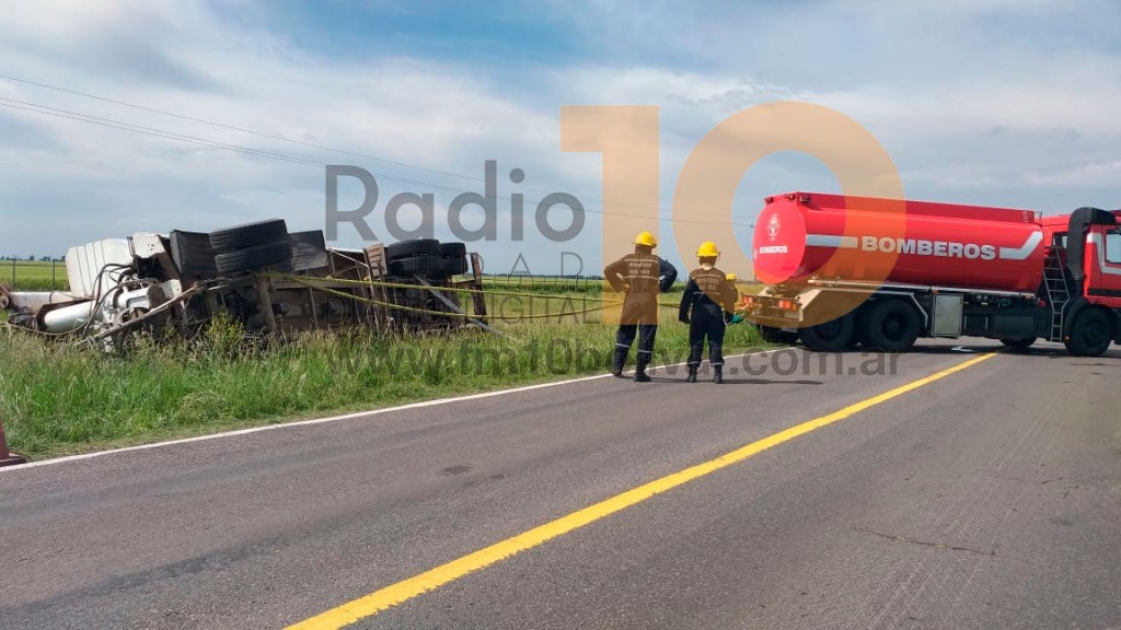 Ruta 65 en inmediaciones a la bajada a Villa Sanz: volcó un camión y trasladaron al chofer con criterio preventivo