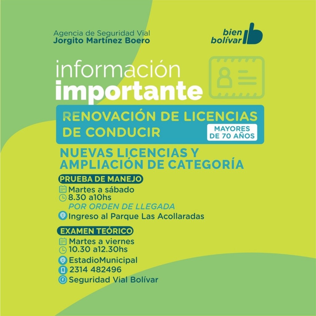 La Agencia de Seguridad Municipal “Jorgito Martínez Boero” informa a la comunidad que a partir del martes 17 de noviembre, se podrá realizar los trámites de ampliaciones o nuevas licencias de conducir.