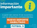 Atendiendo a los protocolos correspondientes para su uso adecuado, quedan habilitadas también las canchas de Fútbol 5.