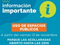 En cuanto al uso de los espacios públicos, el Parque Las Acollaradas permanecerá abierto hasta las 23 horas. Asimismo, se extenderá el horario de apertura de los cementerios, que estarán abiertos de lunes a domingo de 8 a 19 horas.