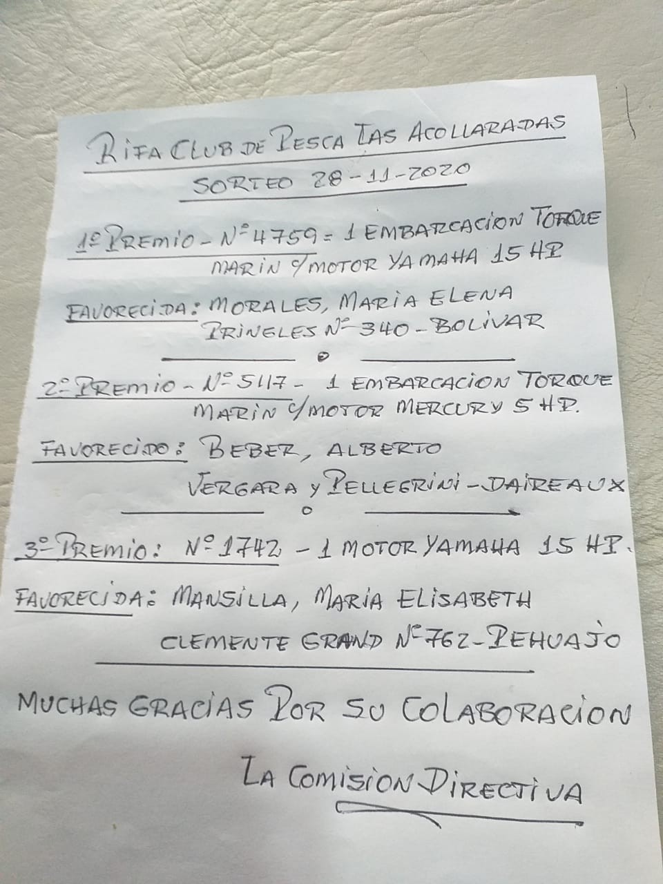 🎉Felicitamos a los ganadores y agradecemos su colaboración con la Comisión Directiva 🎊