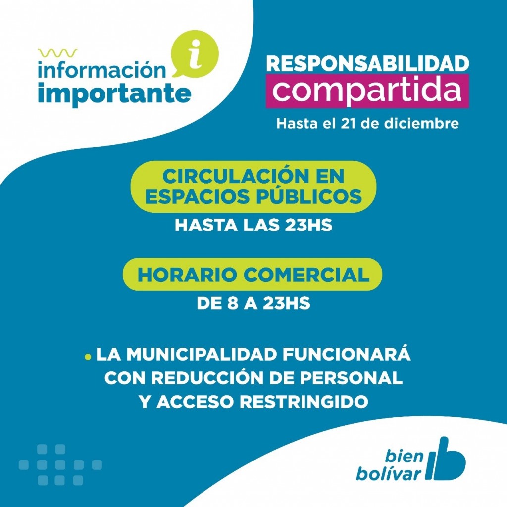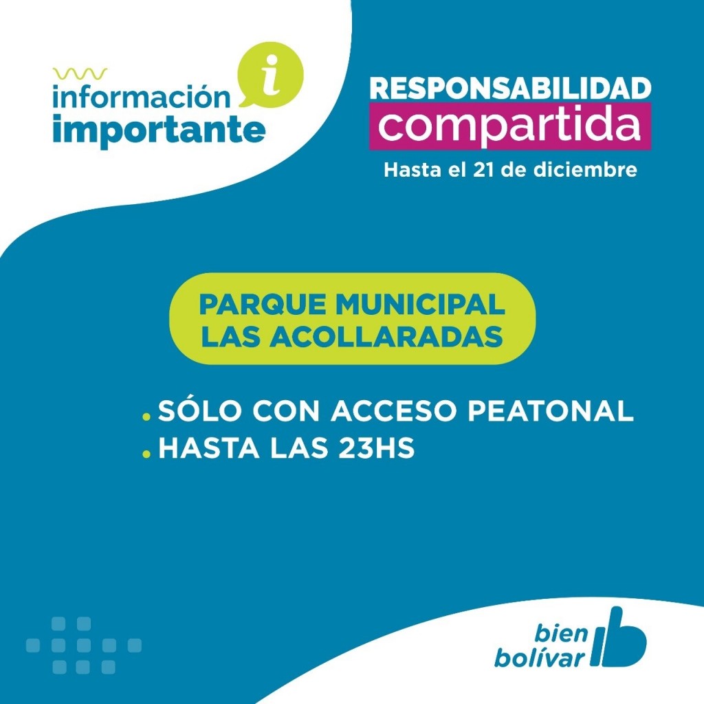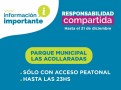 En tanto, el Parque Municipal Las Acollaradas permanecerá abierto sólo con acceso peatonal hasta las 23hs, al igual que los espacios públicos.