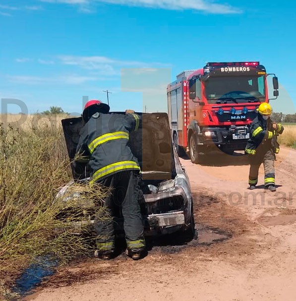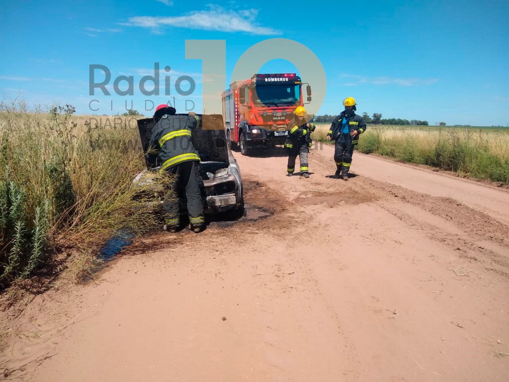El equipo Emergente de la Ciudad se convocó en el camino paralelo a las vías del Ferrocarril para extinguir el foco ígneo, si bien las llamas ya habían devorado la totalidad del vehículo.