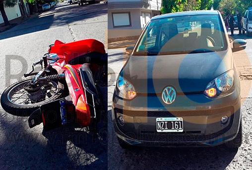 Dos conductores coincidieron en la esquina de Rivas y Paso, uno de ellos a bordo de un Volkswagen Up y el restante a bordo de una moto 110 cc.