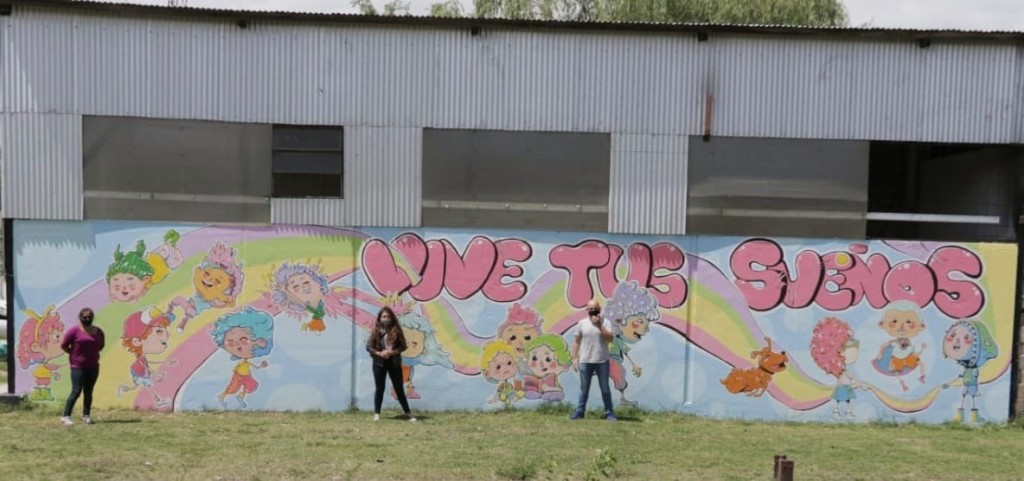 La Dirección de Niñez, Adolescencia y Familia, a cargo del Lic. César Tordó, trabajó articuladamente con Romina Mendoza, fundadora del Comedor Pequeños Gigantes, en una colorida intervención artística que llevó a cabo la bolivarense Mariana Ron.