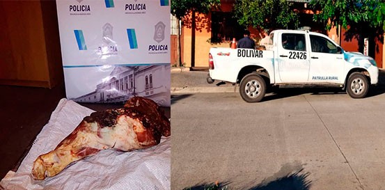 En tal sentido, que este viernes, el Sr. Juez de Garantías de Olavarría,  Dr. Carlos Villamarín, extendió una orden de Allanamiento y Registro para la vivienda en cuestión, la cual se efectivizó en horas de la tarde, con la colaboración del personal de la Comisaria de Bolívar y de la Sub DDI de Bolívar, lográndose secuestrar una paleta de animal vacuno de aproximadamente 35 kilogramos, cuyas características coinciden con uno de los animales faenados.