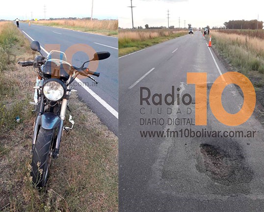 El joven pertenece a las fuerzas de seguridad y transitaba en sentido Urdampilleta a Bolívar, a bordo de su moto, cuando se encontró con el tremendo bache. Su pericia evitó daños mayores en lo personal, si bien fue trasladado al nosocomio en forma preventiva.