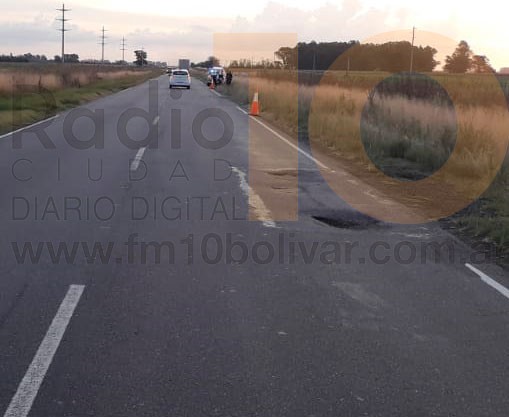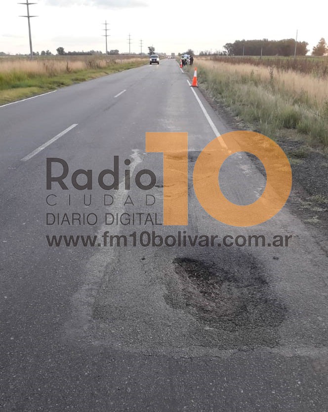 Si bien los daños se extienden en gran parte del tramo de Ruta 65 Bolívar-Guaminí, en el mencionado sector se daña de manera permanente. Generándose baches que se tornan muy peligrosos para quienes desconocen el estado de la cinta asfáltica.-