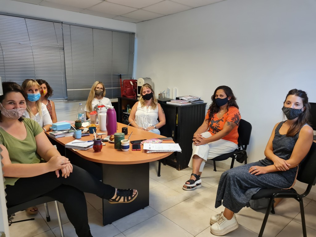 Zannassi y Cazola junto al equipo interdisciplinario de la dependencia, conformado por Daiana Pereira, Celina Manghi, Luciana Caviglia y Mariana Garayar, dialogaron sobre el trabajo realizado, los avances y pendientes respecto a los programas del Ministerio, y el abordaje territorial en situaciones de violencia por razones de género.