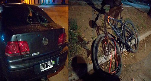 Al parecer, el conductor de una Volkswagen Bora con dominio colocado HUA-840, aminoró su marcha al llegar a inmediaciones del Playón del Ferrocarril. En tanto un ciclista que transitaba detrás castigó en el baúl y terminó impactando en la luneta trasera del auto, cuya rotura evidencia la violencia del golpe.