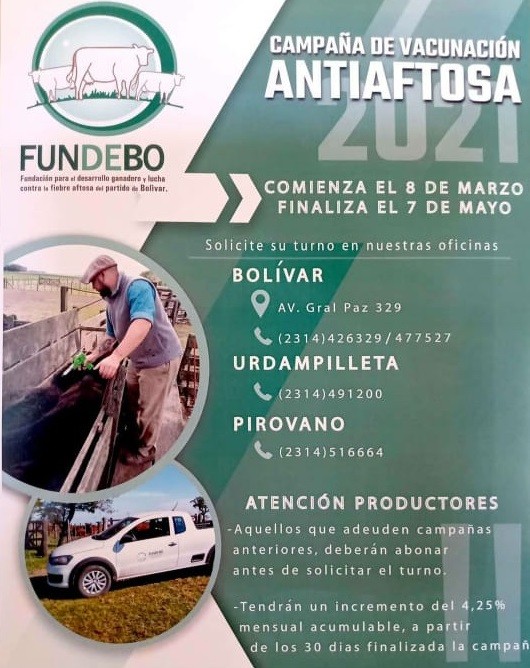 El día 8 se inició la primera campaña del año 2021 para mayores y menores con un cuerpo técnico de 13 personas, más de 30 veterinarios y personal administrativo. “Siempre hay algún productor que, a pesar de la campaña, decide no vacunar a su ganado” explicó Carlos.