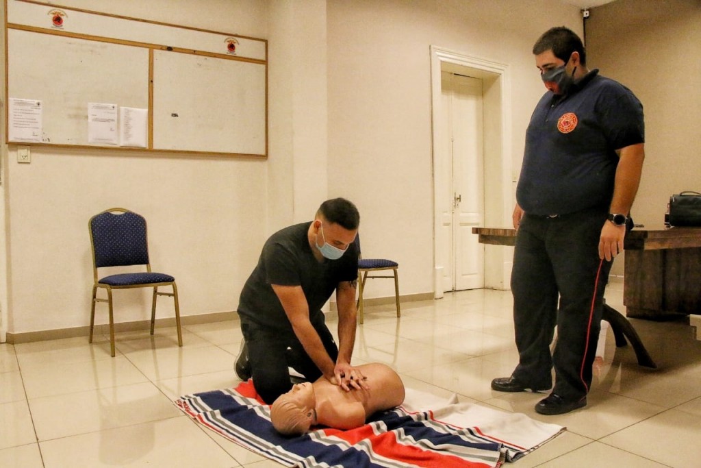 Durante el encuentro, que se desarrolló cumpliendo con el protocolo sanitario vigente, se brindaron las técnicas básicas de salvataje que consisten principalmente en el masaje cardíaco externo, compresiones torácicas, respiración artificial y uso del desfibrilador.