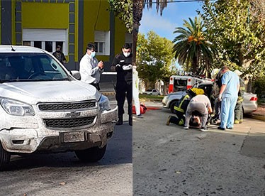 Un vehículo que trasladaba a dos pasajeros transitaba por avenida Alsina en sentido del centro de la ciudad (avenida Brown) , e impactó con una camioneta Chevrolet S-10 que ingresaba a la avenida desde calle Dorrego.