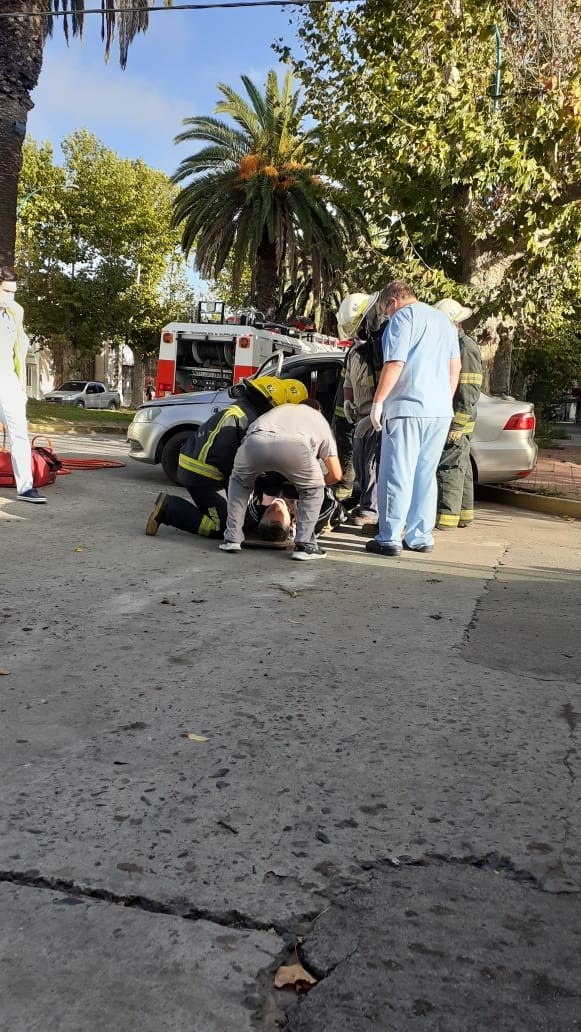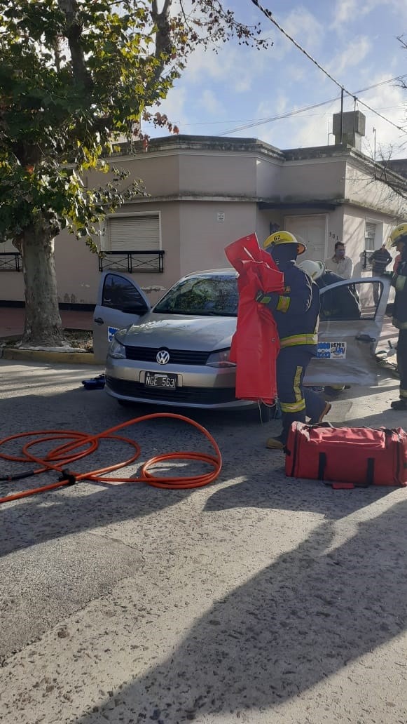 Bomberos Voluntarios debieron extricar al conductor utilizando la tijera neumática, ya que la puerta no podía abrirse debido al fuerte golpe.
