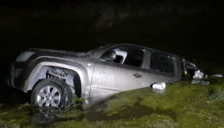 Según indicaron testigos en el lugar, la camioneta Volkswagen Amarok en la que viajaban cuatro personas habría realizado una maniobra para evitar colisionar con un vehículo que circulaba en dirección contraria sobre el mismo carril, momento en que la camioneta termina en la cava.