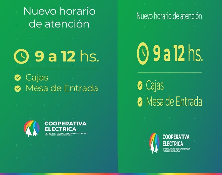 La Cooperativa Eléctrica de Bolívar informa su nuevo horario de Atención.-