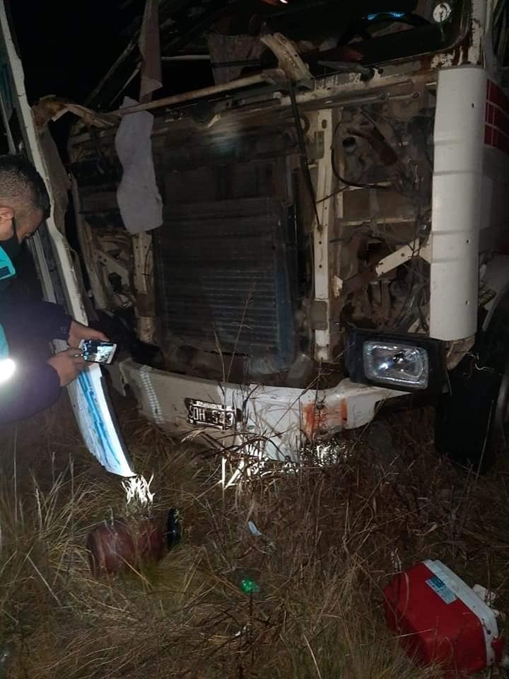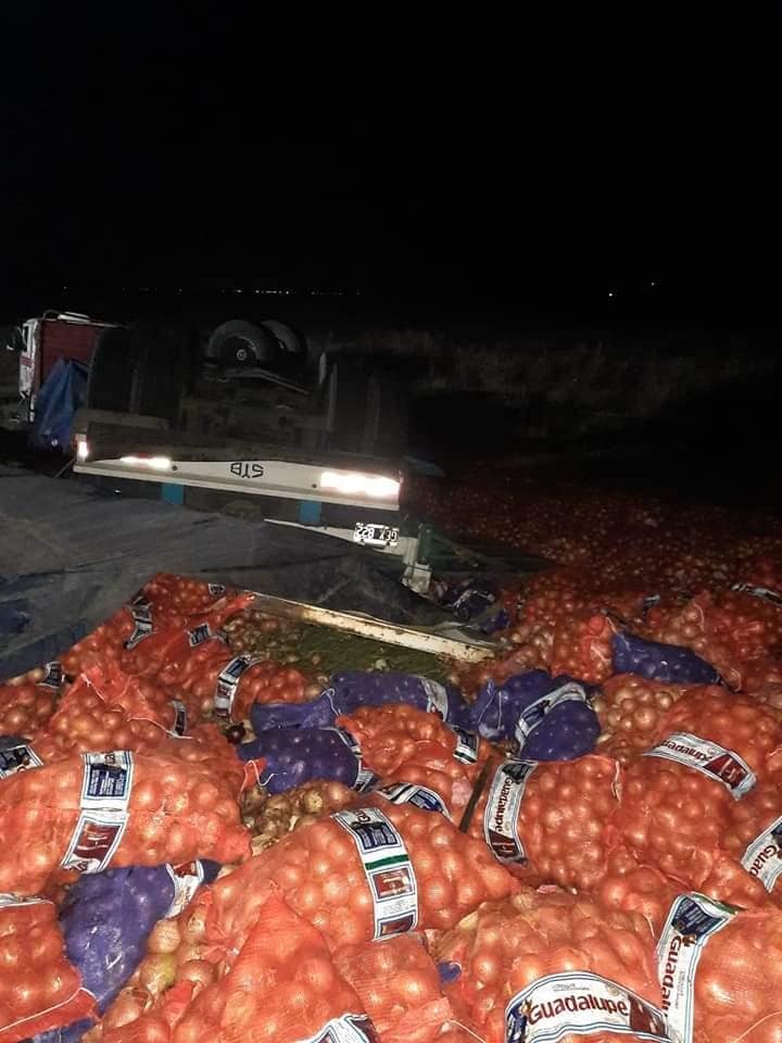 A la 1:45 Bomberos Voluntarios de Guaminí es alertado por Policia Comunal de la misma ciudad, de un accidente acaecido en Ruta 65. Llegados al lugar constatan la presencia de dos camiones, uno de ellos volcado sobre la banquina y parte de su carga sobre la cinta asfáltica y otro solo con daños en la carrocería.   Se cortó la ruta por término de 3 horas   Ambos habrian impactado contra 9 vacunos. Por disposición de Policía Comunal y Vial se procede al corte total de ruta por aproximadamente 3 horas.   Una vez realizado el trabajo de Policía Científica se procedió a la limpieza de la cinta asfáltica.   Trabajaron en el lugar, Bomberos de Guaminí, junto a Policía Comunal 1ra, Policía Vial, Patrulla Rural , Policía Científica de Carhué. Además de personal del Hospital Municipal de la localidad, con acciones preventivas.-   Fuente: Bomberos de Guaminí