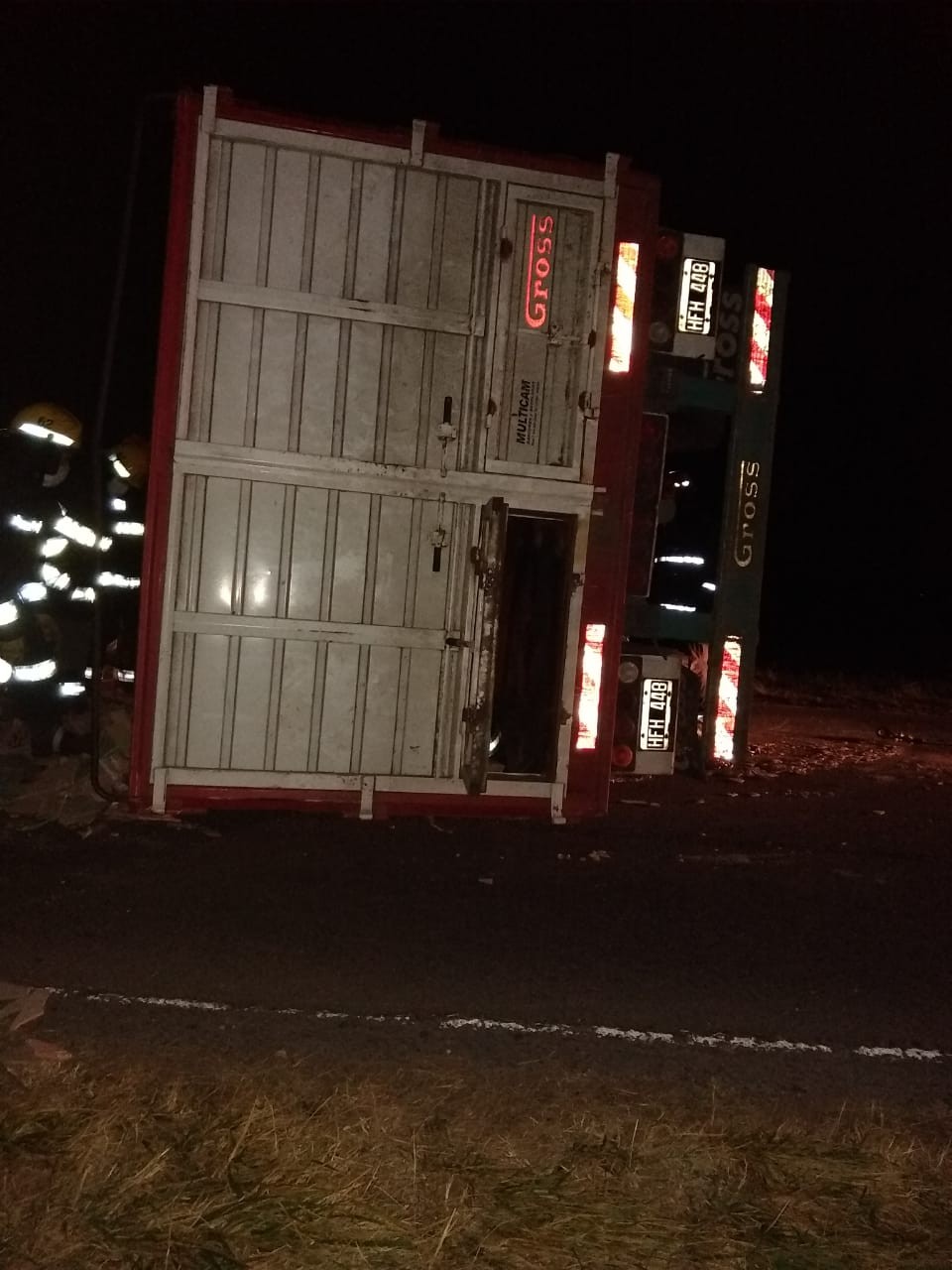 Desde Defensa Civil se supo que arribó al lugar el móvil n°4 a cargo del agente Jornefí, quien pudo constatar que se trataba de un camión Mercedes Benz, dominio colocado GPZ-814, en el que viajaban dos personas, había volcado su acoplado a la altura del kilómetro 276.