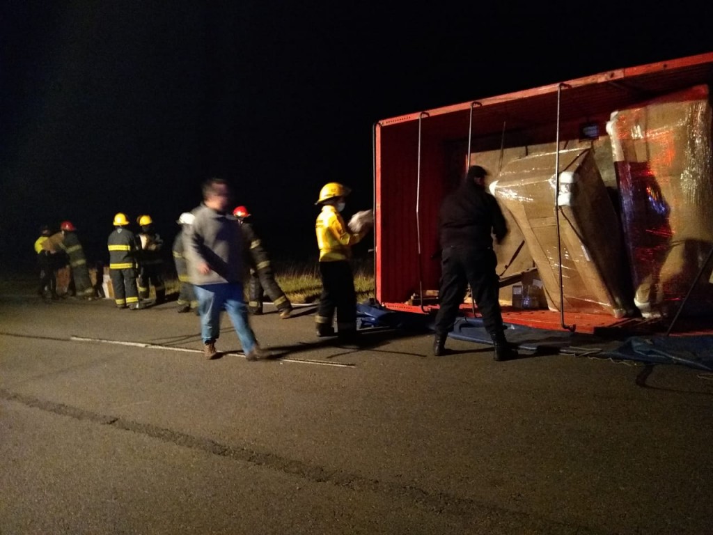 El hecho fue reportado al equipo emergente de la ciudad, alrededor de las 22.30 horas y si bien no hubo personas heridas de los dos ocupantes del camión, se debió hacer transbordo de carga hacia otra unidad.-