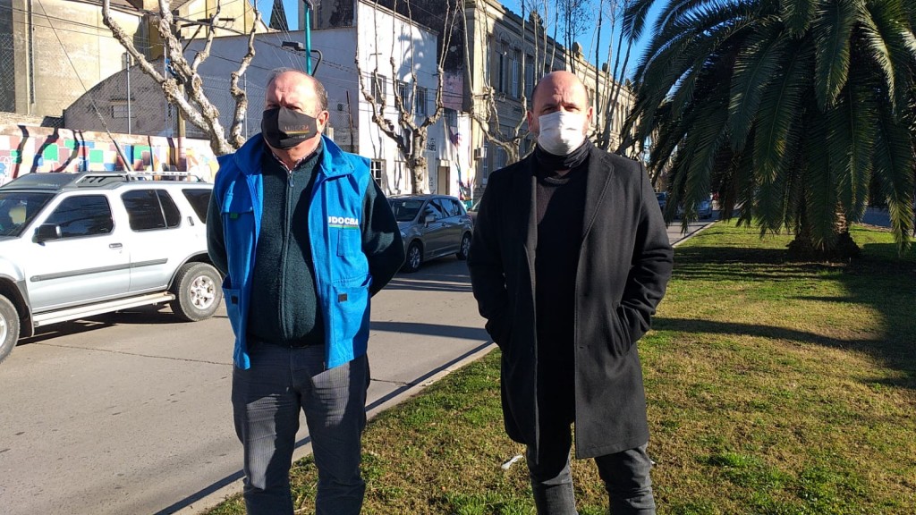 Luís Rodríguez acompañado de Alejandro Rey, quienes integran la mesa directiva de UDOCBA hablaron con los medios locales y explicaron el alcance de la mejora lograda en el último tramo de la negociación con las autoridades bonaerenses.-