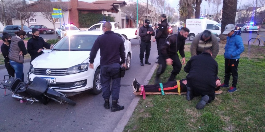 La mujer que conducía el Volswagen Polo resultó sin lesiones y el joven que transitaba a bordo de una moto Keller 110, estaría fuera de peligro más allá de las excoriaciones y golpes resultantes de la colisión.