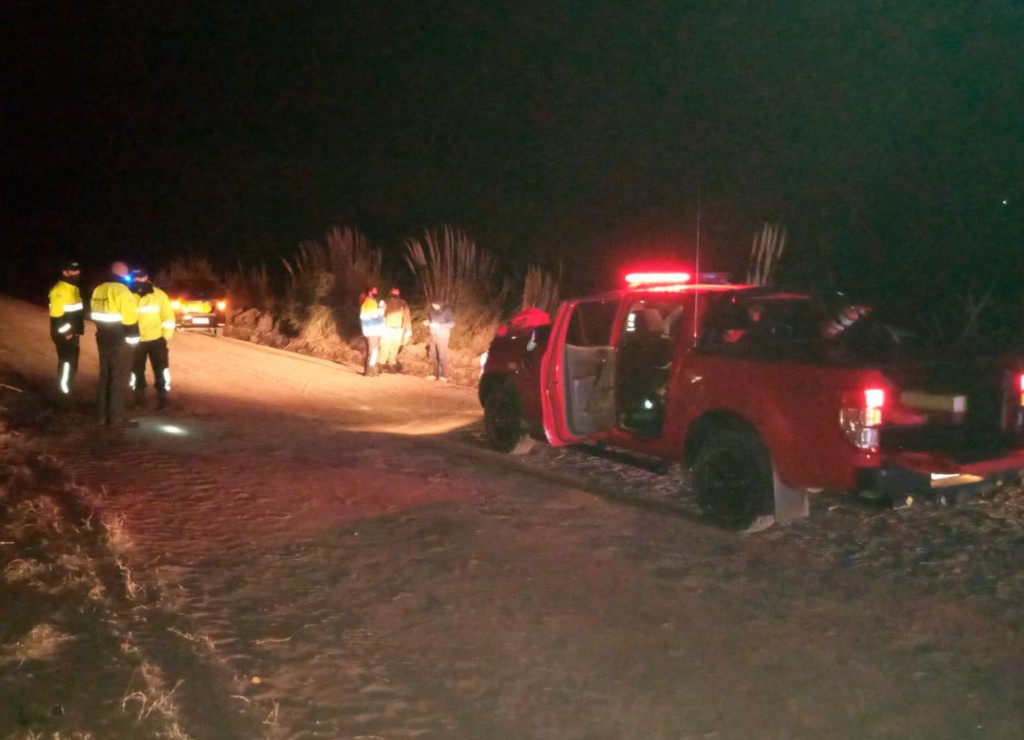 Arribados al lugar, se pudo constatar que se trataba de un Volkswagen Voyage, con dominio colocado OKS-626. Personal de Defensa Civil reportó la presencia del vehículo en cuestión, volcado sobre un canal de desagüe paralelo al camino principal.