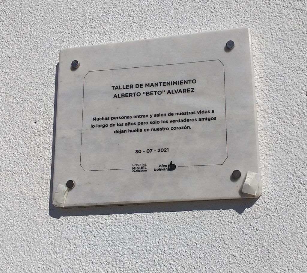 Compañeros y autoridades municipales recordaron a Beto Álvarez, colocando una placa con su nombre al taller de mantenimiento del hospital Capredoni