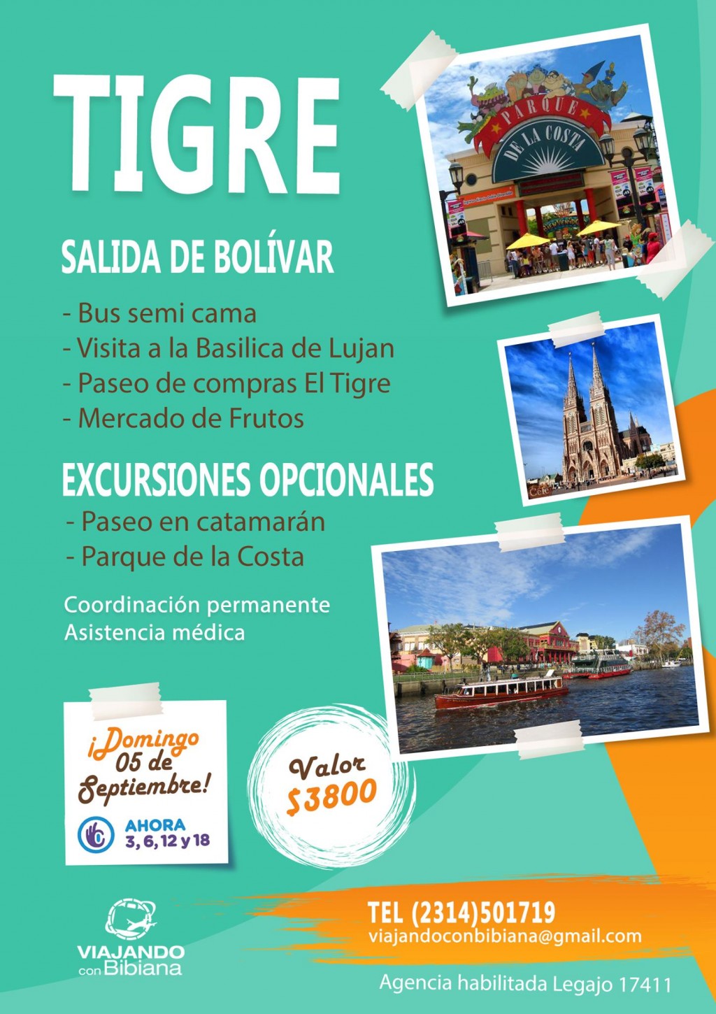 1. 5 de Octubre  Tigre con parada en Basílica de Lujan y después recorrida completa (ver folletos en artículo)