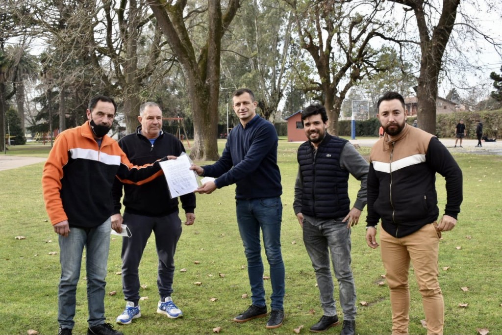 Finalizaron la recorrida en el parque del Club de remo, junto a los representantes de “Soldados movilizados por la gesta de Malvinas de Azul”, Marcelo Germondari y Germán Tucci. Ambos pudieron expresarle a Bucca su intención de diseñar e implementar una ley para quienes hayan prestado servicio de calidad de soldados conscriptos durante la guerra de Malvinas.