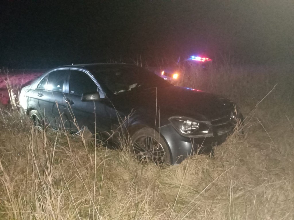 Un móvil de Defensa Civil a cargo de los agentes Arioni, Mónica y el director del área Roque Bazan en su vehiculo particular, se hacen presente en el lugar e informan que se trataría de un vehículo Mercedes Benz, dominio colocado (NCD-983), quien habría colisionado contra 2 caninos.