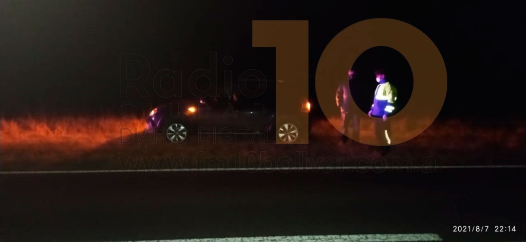 Al arribar al lugar el móvil de Defensa Civil, se encontró con un vehículo en la banquina, casi sobre el préstamo de la arteria nacional de circulación.