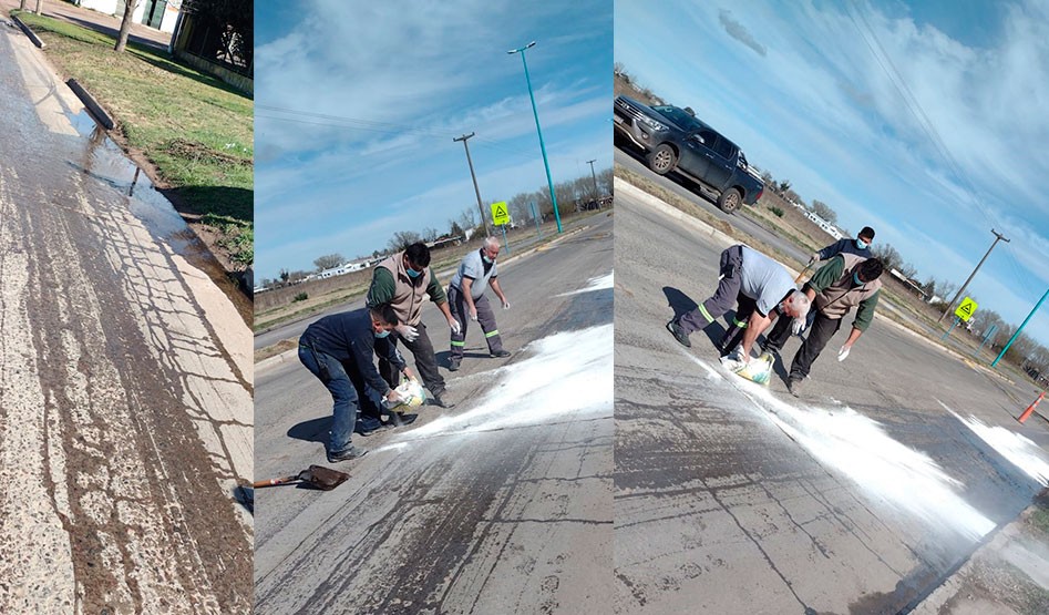 Agentes de Defensa Civil trabajaron en la limpieza de la cinta asfáltica en avenida Mariano Unzué