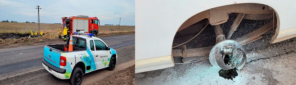Tras la emergencia,  el móvil nº7 de SV solicita la presencia de Bomberos Voluntarios sobre la ruta provincial 65, a unos 5 kilómetros de la rotonda 65 y 205