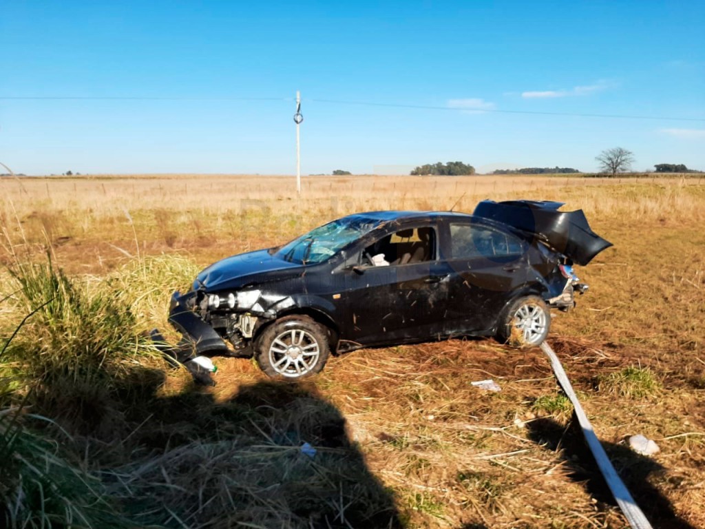 La curva del accidente está en inmediaciones de "La Emilse", donde Bomberos Voluntarios trabajaron para que el Chevrolet Sonic MTW-647, pueda ser retirado del lugar.