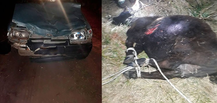 Transitaban por un camino rural a bordo de su auto y colisionaron con un animal vacuno