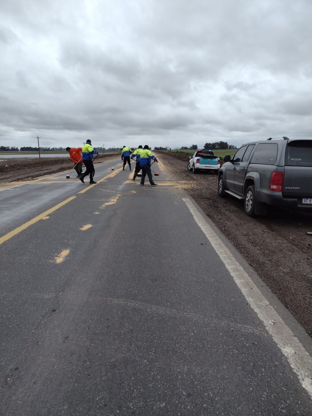 Un equipo de agentes de Defensa Civil, trabajó dejando la zona en condiciones de circulación, efectuando el barrido del cereal.