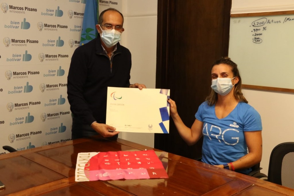 El intendente Marcos Pisano recibió esta tarde a la remera paralímpica bolivarense Brenda Sardón, quien representó a la Argentina en la disciplina de remo adaptado individual de los Juegos Paralímpicos de Tokio.