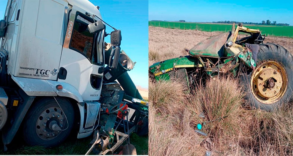 Un joven de Pirovano transitaba a bordo de un tractor remolcando una cargadora, en sentido a Daireaux, cuando habría sido embestido por un camionero.