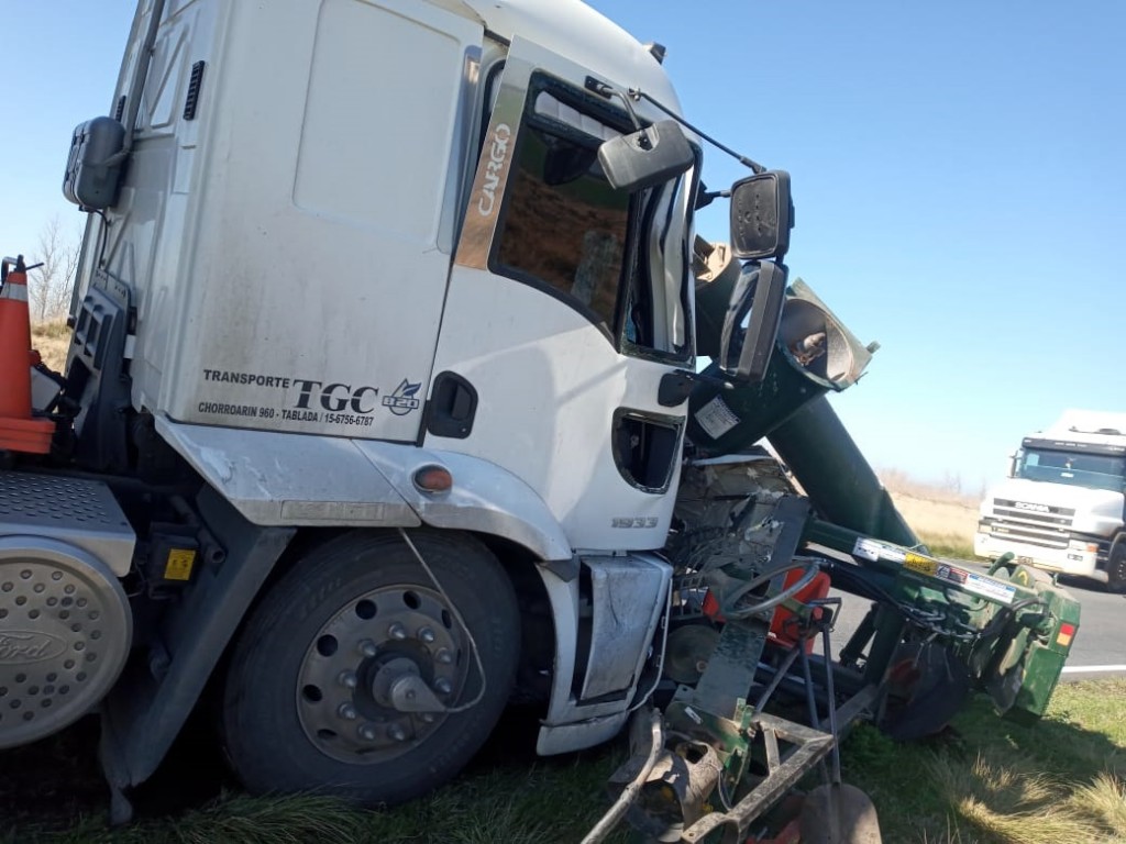 Ocurrió este jueves por la mañana, en ruta provincial 65 cuando un camión que remolcaba un semi castigó desde atrás a una formación agrícola