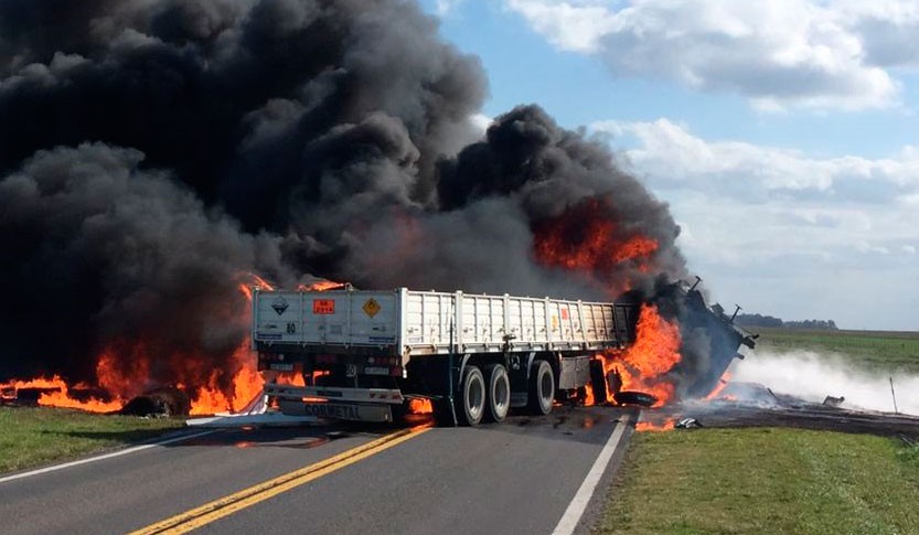 Habría ocurrido en el kilómetro 245 de la ruta nacional 205, y luego del impacto frontal de dos camiones, se generó un incendio masivo.