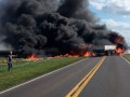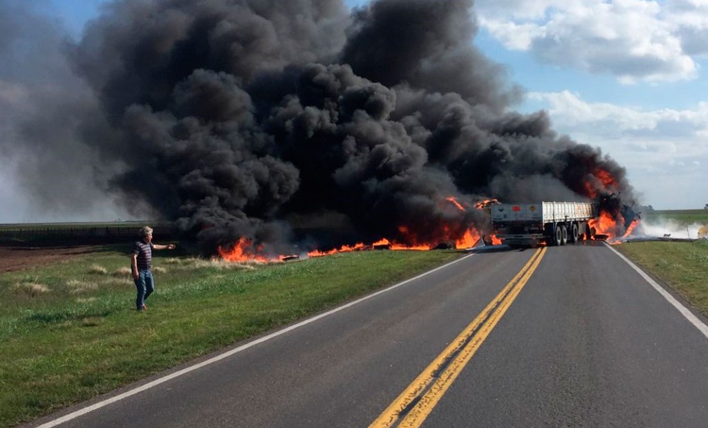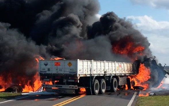 La ruta aún se encuentra cerrada al tránsito y se supo que los camiones transportaban hacienda y productos quìmicos. El consecuente incendio inmediato generó dañoss irreversibles en la hacienda, lógicamente además de la muerte de al menos ambos conductores.