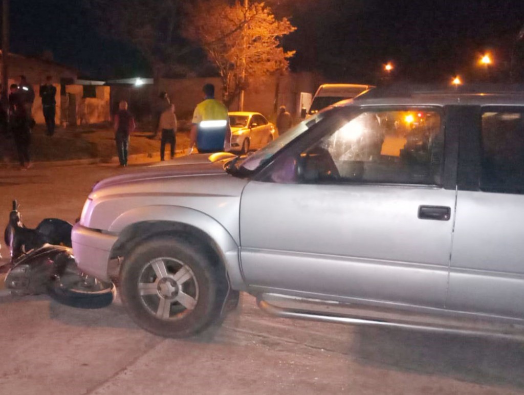 Un conductor a bordo de una Chevrolet S-10, color gris con dominio colocado HMU-884 y una familia se trasladaba a bordo de una moto Guerrero 110, coincidieron en tiempo y espacio.