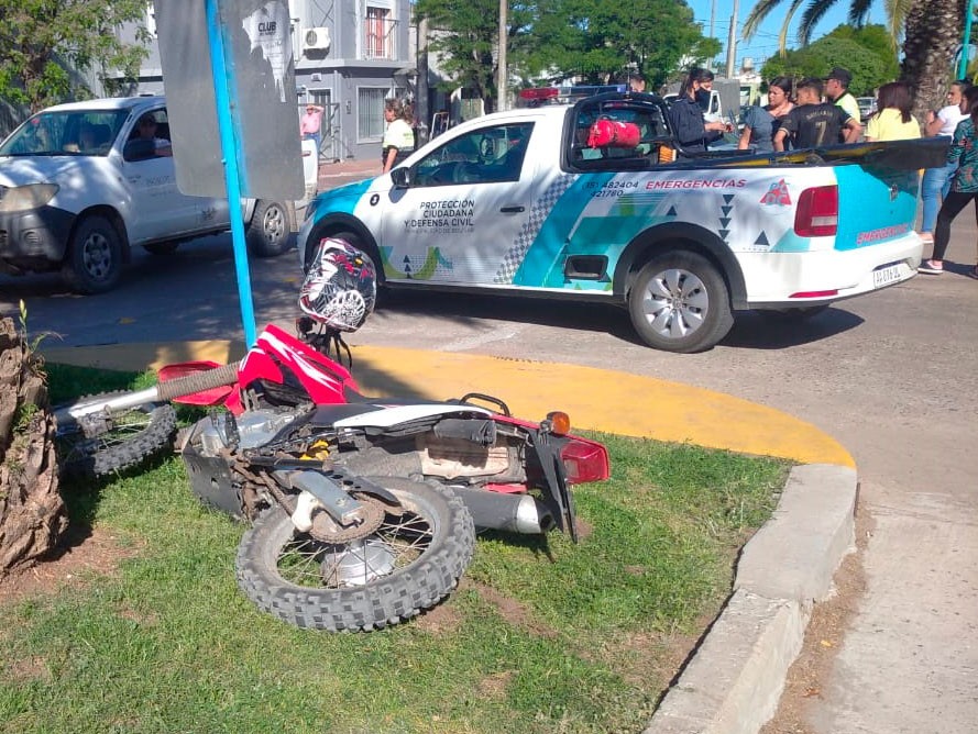 Como es habitual, las fuerzas municipales acuden a la emregencia con el fin preventivo. Por otra parte, Policía Departamental actúa en concordancia con lo normado. Un conductor a bordo de un Peugeot 20, con dominio colocado EBW-158 transitaría por calle Las Heras, mientras un jovern a bordo de una moto tipo En Duro Honda XR 250 cc, con dominio colocado  A079OFZ, se movilizaba por Fabres García en sentido oeste, cuando ocurrió la mencionada colisión. Tras el impacto, el motociclista fue trasladado en forma preventiva el nososocmio local, en tanto ambos vehículos quedaron en el lugar, hasta la comunicación del precario médico.