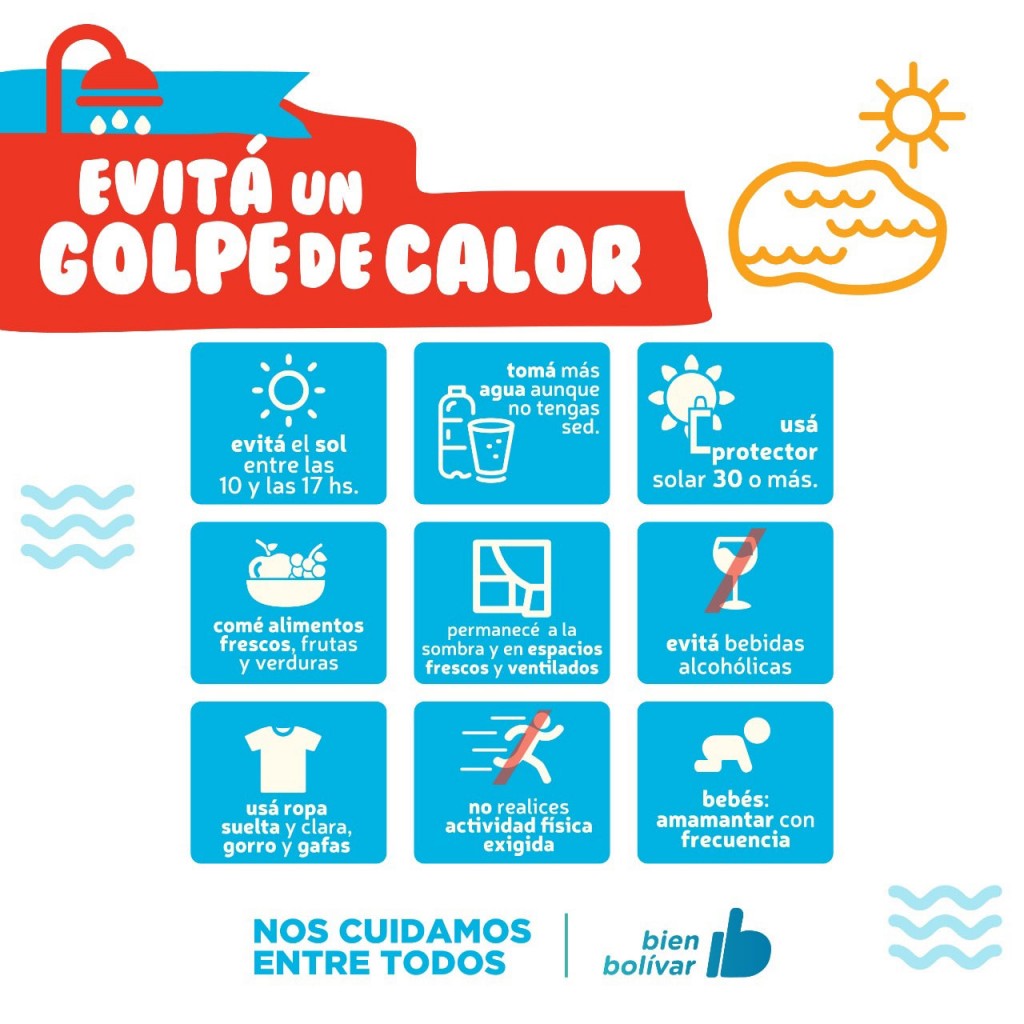 El Servicio Meteorológico Nacional (SMN) informó que se esperan, desde este miércoles hasta el sábado, jornadas de altas temperaturas en la región, por esto la Municipalidad ofrece distintas recomendaciones que se deben tener en cuenta para evitar golpes de calor.
