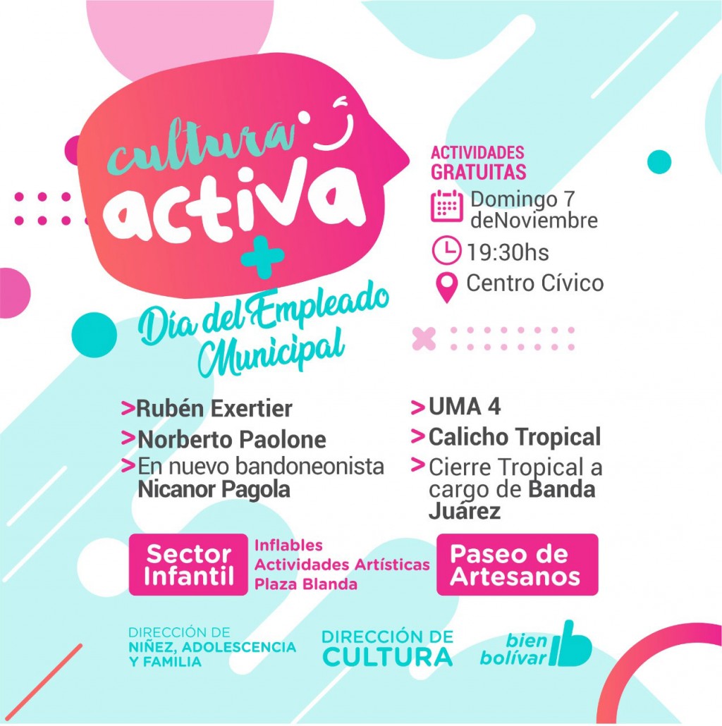 Este domingo, a partir de las 19:30hs, vuelve la propuesta cultural y recreativa “Cultura Activa” al Centro Cívico, y en el marco de la misma la gestión municipal celebrará el Día del/la Empleado/a Municipal.
